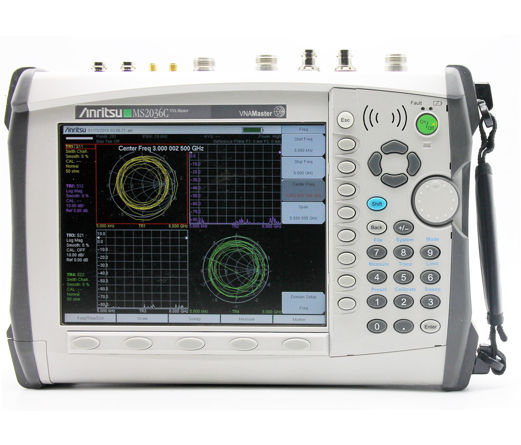 The VNA Master MS2036C and spectrum analyzer from Anritsu is the industry's broadest frequency handheld solution for harsh physical and RF environments of field testing. It has an industry-first 12-term error correction algorithm, making it an impressive, multi-function solution for cable, antenna, component, and signal analysis needs in the field.