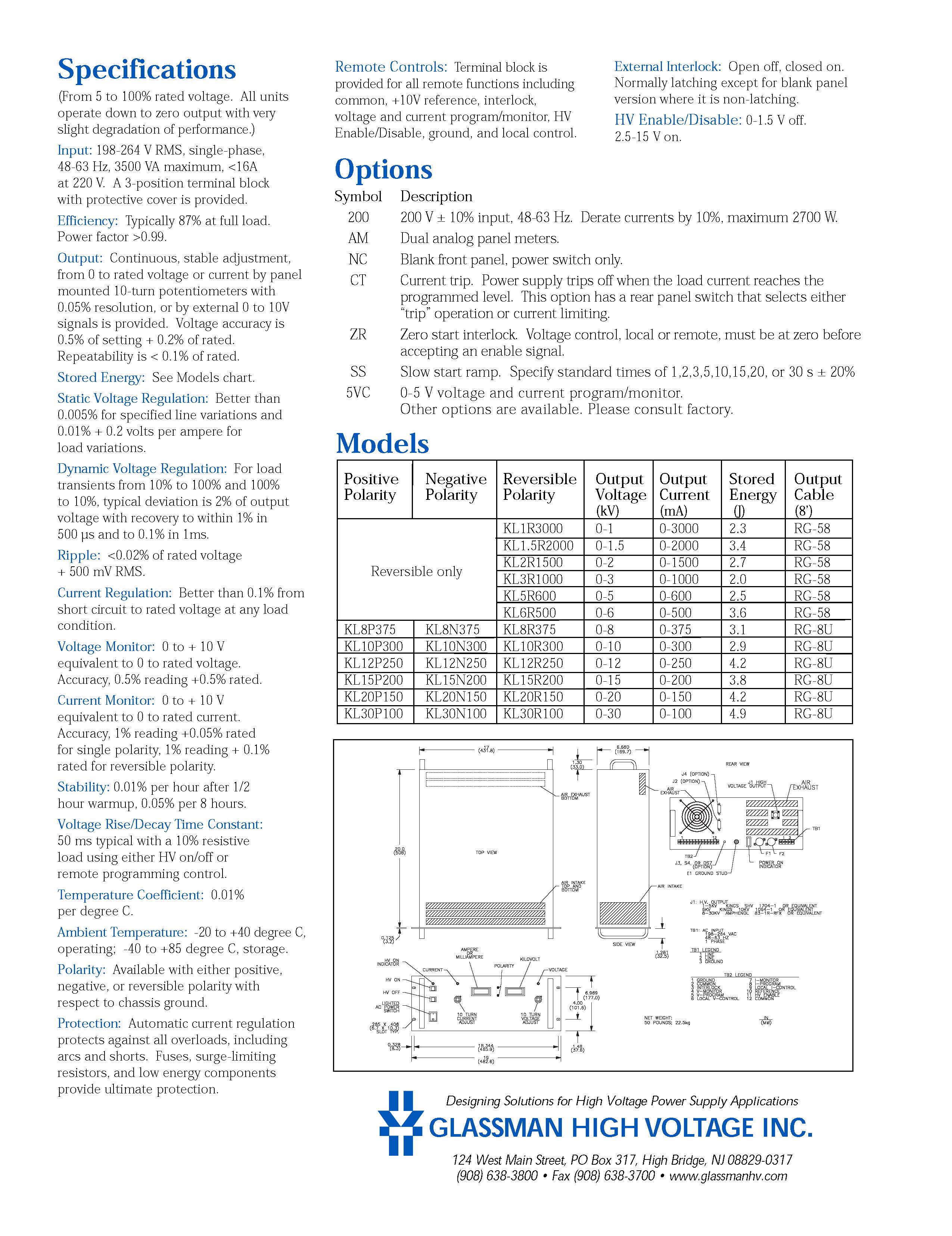 Used Glassman High Voltage KL012R250-22 for sale by Optical Innovations Inc. | used-line.com